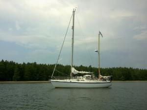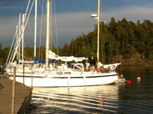 Rantauduimme Elisaareen 36 nm moottoroinnin ja purjehtimisen jälkeen. Porkkakaan asti ajoimme koneella ja sieltä eteenpäin purjeilla. Tuuli oli aamulla 5-6 m/s ja yltyi iltapäivästa porkkalan selällä jopa 10 m/s asti. Nyt tuuli on jo tyyntynyt. Hyvä päivä tosin vastatuulessa aika kolea. 59n58.7 23e54.6