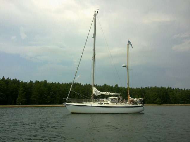 Rantaan jurmoon aikamoisen sähläyksen jälkeen. Satama on aika täynnä ja peten vieressä oli ollut paikka mutta nyt se oli kaventunut liian kapeaksi meille. Ehkä siihen joku pieni etana olisi mahtunut. 59n49.7 21e35.0
