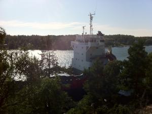 Tuosta sisään. Ihan kiva ankkurilahti väylän vieressä. 60n11.3 21e28.2