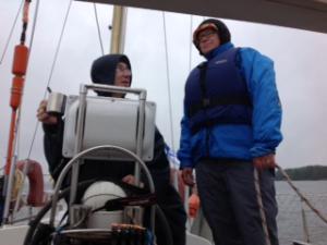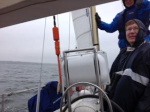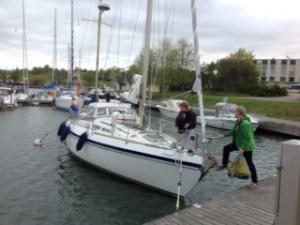 Tero, Anna ja Rami vihdoin liikkeellä ja sadekin on jo lakannut. Saimme eilen korjattua purjelaatikonkannen, mahdollisesti ilmattua peräsintä ja laitettua vessaan sähkönapin. 60n00.9 22e51.0